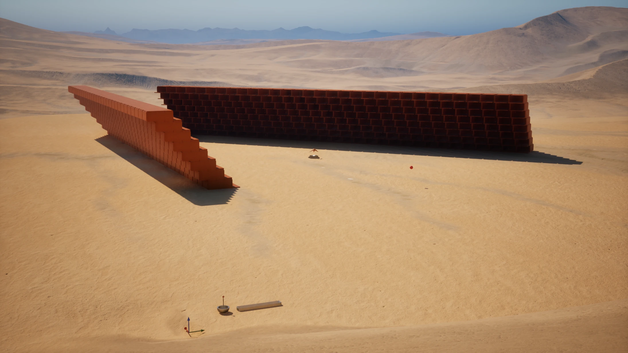 Another interesting observation after implementation of Canvas was the surprising possibilities that showed themselves during playtime with agents. below you can see Agent Wheeler roaming around the desert outside the normal bounds of its model to get a nice view on the model from top of the dune. What’s interesting is here the Canvas distracts us from actually dealing with the model, but rather invites us to wander around the model and perhaps maybe chill a bit ?