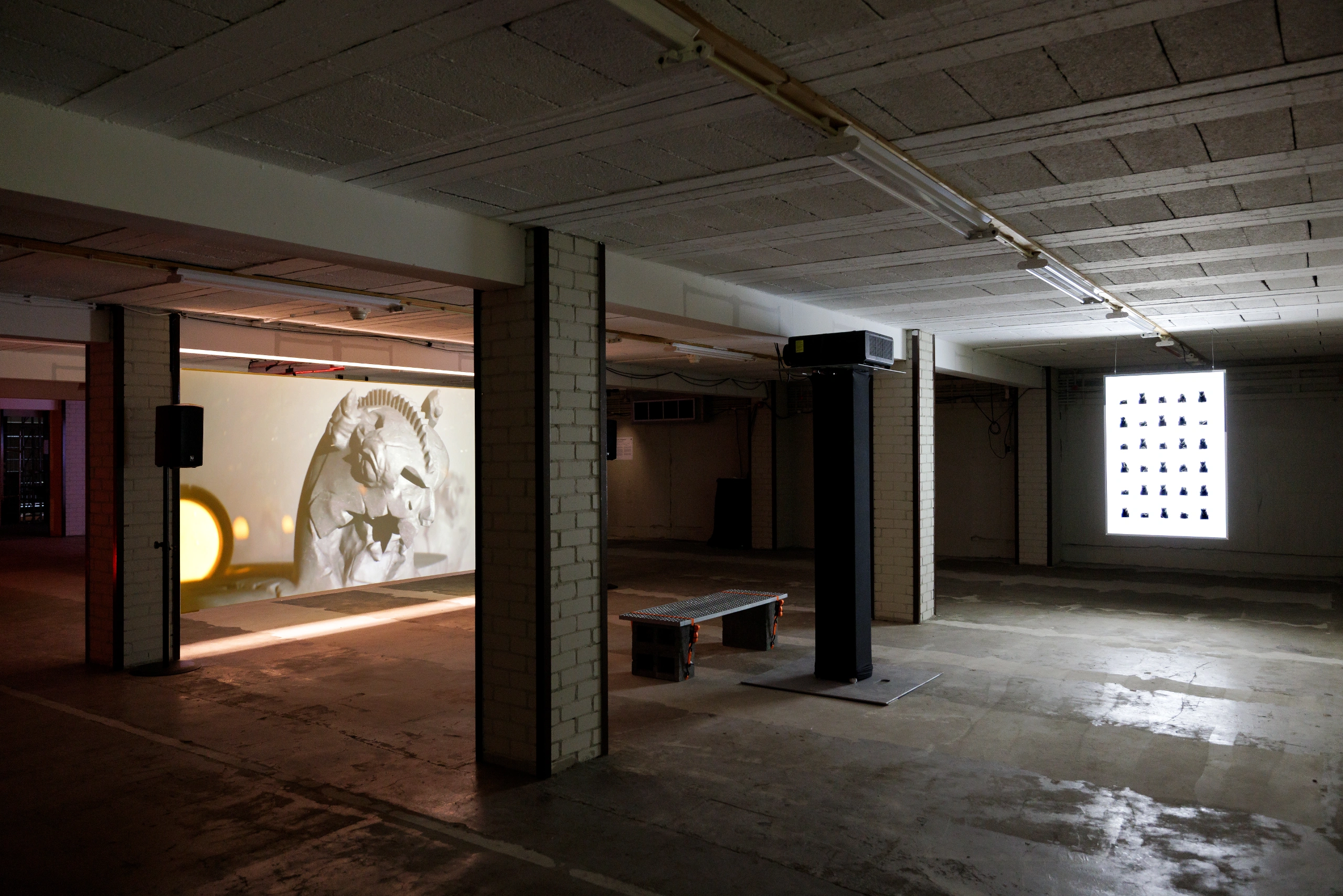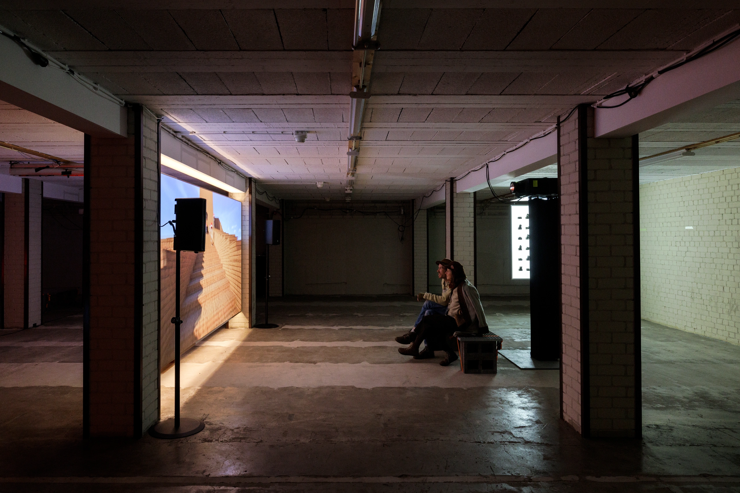 During that period, I had the opportunity to show my work at Emerging Exits in Arnhem (1 October till 3 November). Curated by Jacco Ouwerkerk and Marijn Bril, the exhibition took place in the Diogenes Bunker, one of the largest bunkers built by the Germans during World War II. Responding to this context, I prepared a cinematic experience sourced entirely from ESHRAQ’s simulated environment. It felt like the right moment to turn ESHRAQ into a film stage.