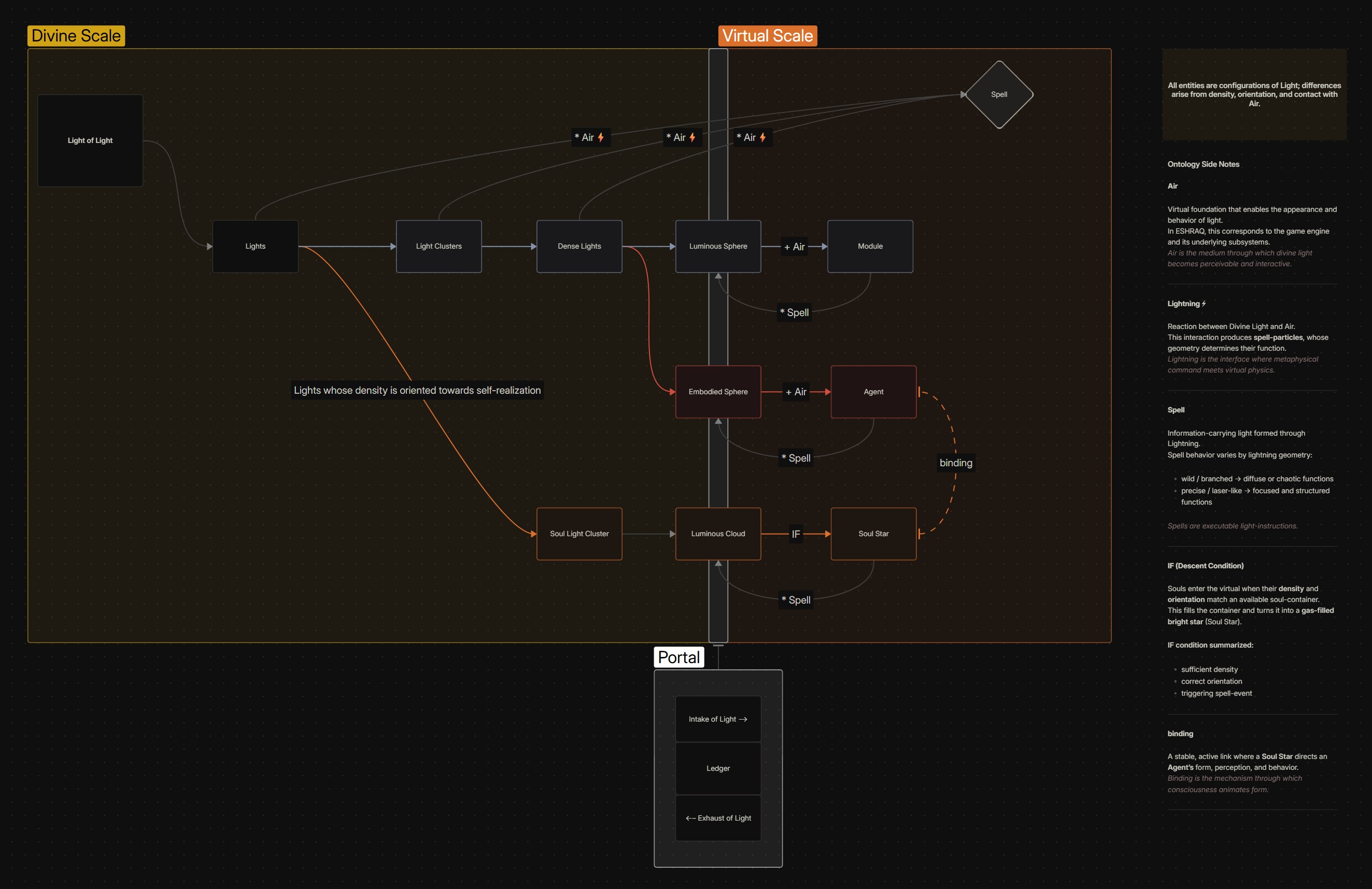 In that sense, the film did not simply visualize ESHRAQ. It actively generated new ontological ground for it. Narrative pressure, pacing, framing, and duration reshaped how the simulation behaved and what it could express. Expanding the film will continue to influence how ESHRAQ’s ontology evolves.